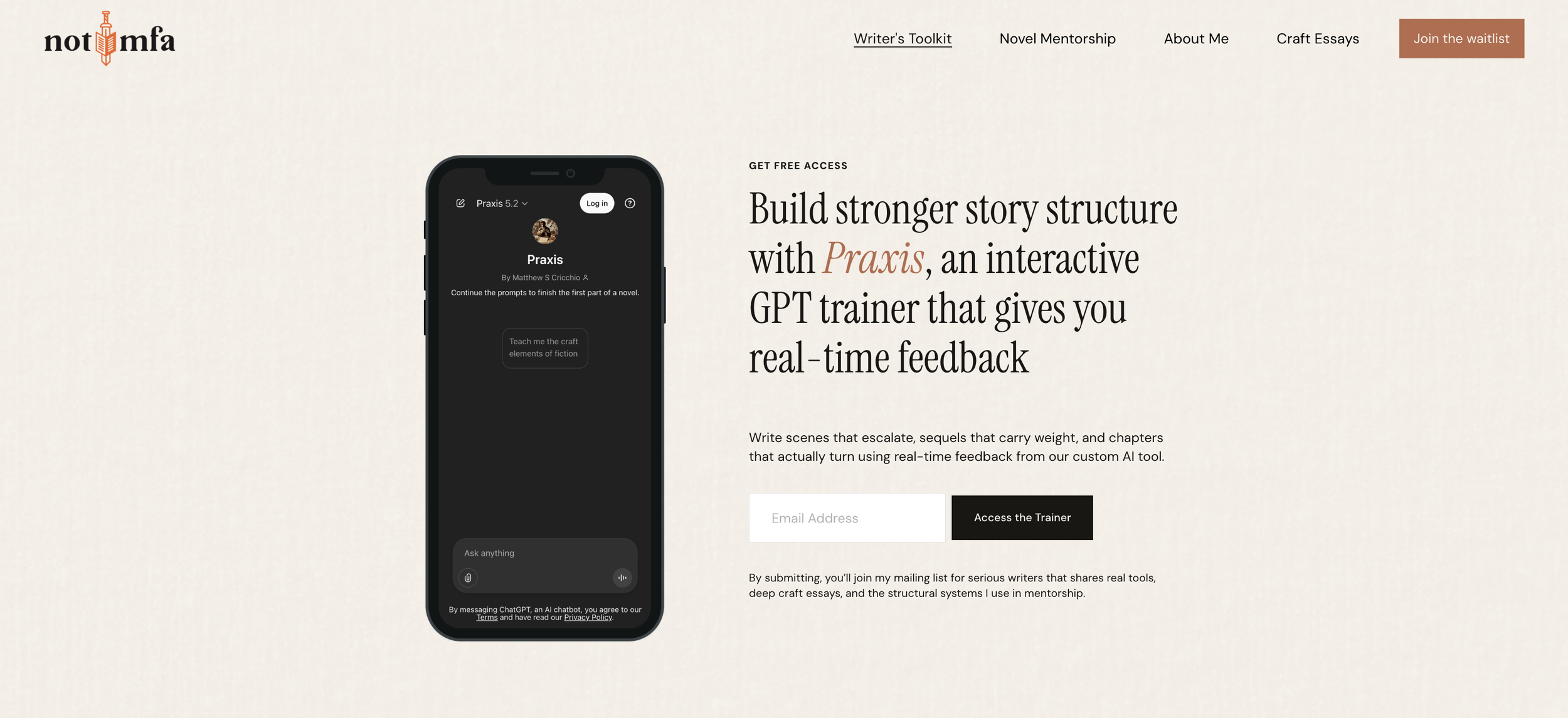 Not MFA is an immersive, MFA quality course for people that don't have the time, resources, or desire to attend a university MFA program. Not MFA aims to give consumers to give the same high-quality instruction you’d find in a college classroom no matter the experience level of the writer.